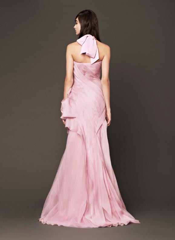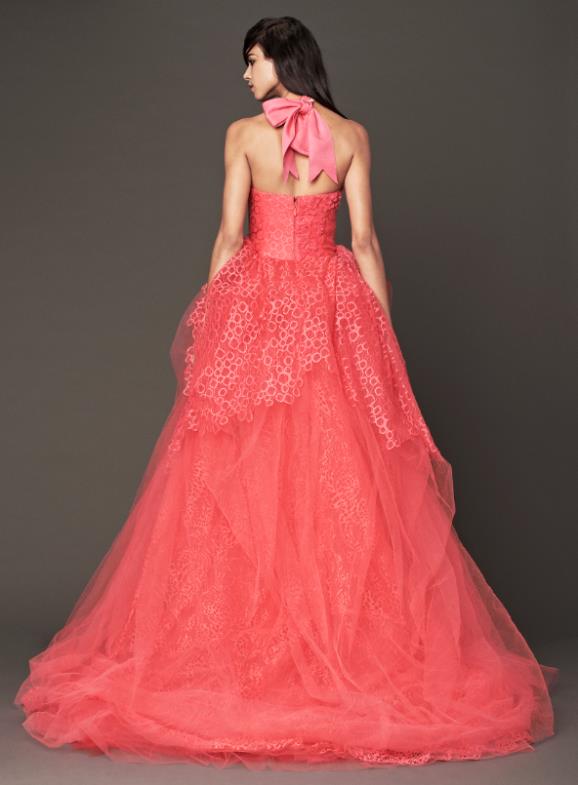 De dar água na boca, a cartela de cores da estilista Vera Wang para o outono 2014 vai do rosa antigo ao chiclete passando pelo vibrante tom de melancia. Vibrantes, as nuances combinam com noivas que fogem do tradicional sem perder a elegância. (Foto Reprodução)